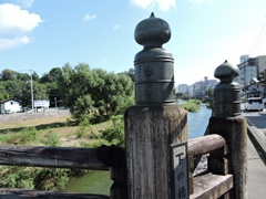 1611年に完成した中の橋にも擬宝珠が取り付けられたが、明治43年(1910)の大洪水の折に、中の橋が洋式架橋されると、擬宝珠は下の橋へと移された。 |